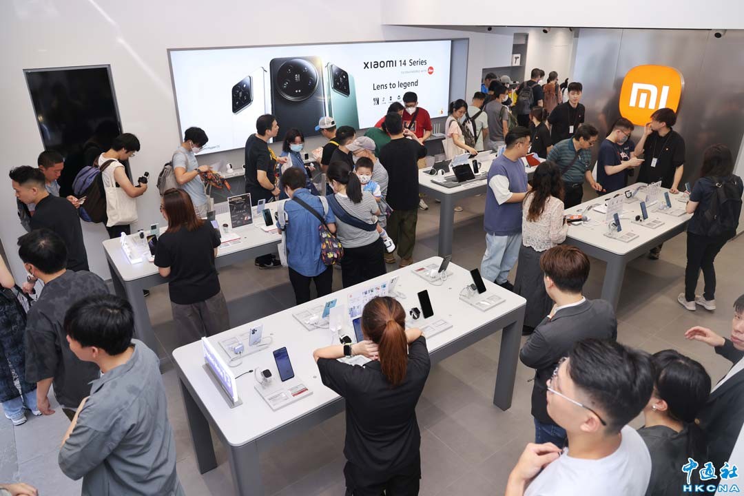 6月29日,小米之家香港銅鑼灣怡和街新店開幕,排隊的人流一度從店內延伸至街邊。(香港中通社記者 曹文毓攝)