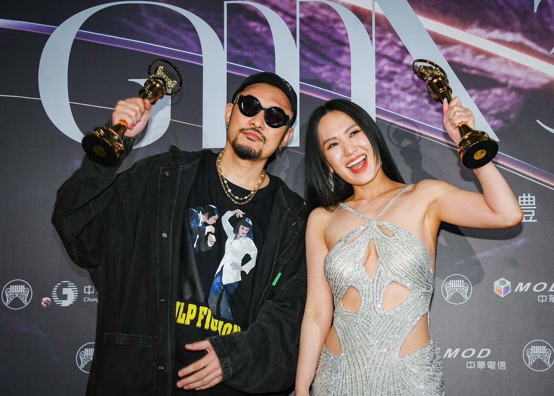 2024年第35屆金曲獎6月29日於台北小巨蛋舉行。今年一共有 1,568 張專輯,24,071 件作品報名參賽,經三階段的評審作業後,最後是148件作品入圍角逐包括最佳男、女歌手獎、最佳華語專輯獎、最佳樂團獎、最佳新人獎、最佳演唱組合獎等27 個獎項。圖為熱狗(左)、孫盛希(右)分別獲得第35屆金曲獎最佳華語男、女歌手獎。 香港中通社圖片