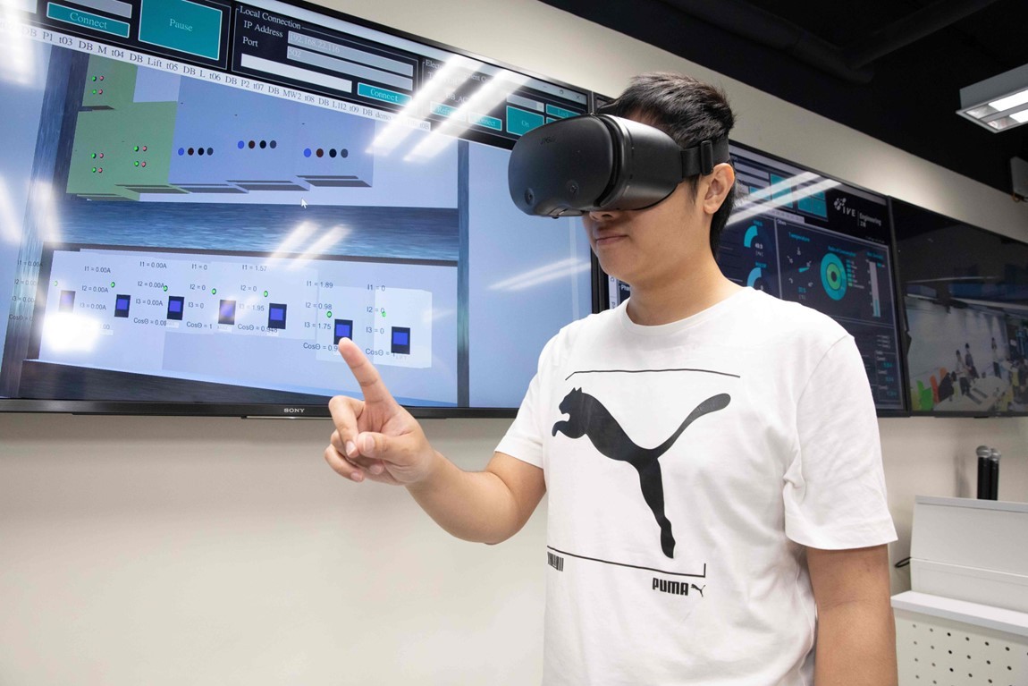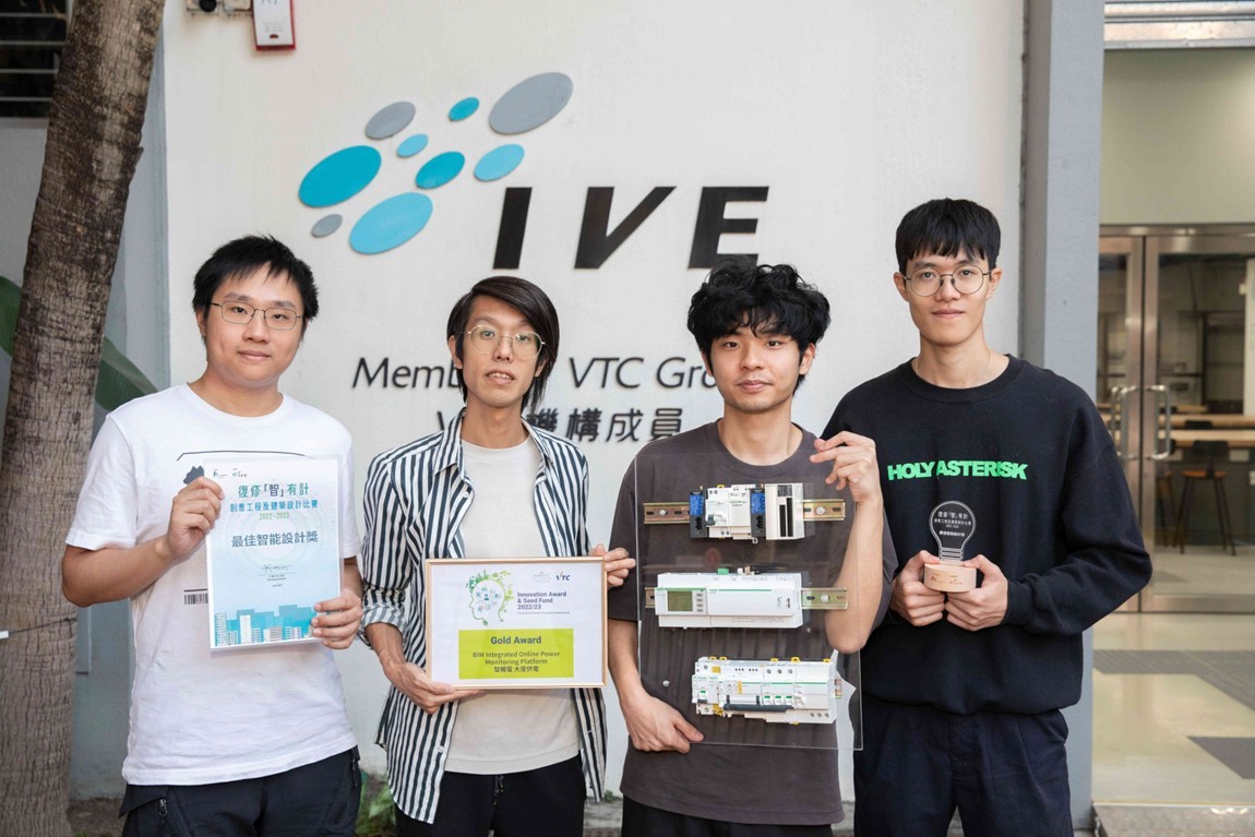 吳浩然(右一)、葉立星(左一)、吳智霖(右二)與IVE(黃克競)工程系講師梁霈銃(左二)。 三名香港專業教育學院(IVE)工程學科的小伙子發揮創新思維,並將所學的專業知識與科技融合,突破了傳統的電力檢查方式。他們結合數字孿生(Digital Twin)技術、建築信息模擬(BIM)及樓宇管理系統(BMS),使建築物的電力系統在電腦模型中能一目了然,可以全天候實時、遙距監測電力供應情況。用家戴上虛擬實境(VR)眼鏡後,便猶如走進大廈之中,遙距檢測及控制電力供應。嶄新的電力檢測方式,讓項目贏取多個獎項,包括VTC提供的種子基金、市區重建局與IVE舉辦的“復修‘智’有計”創意工程及建築設計比賽2022/23的最佳智能設計獎及優異獎。 傳統檢查意外新聞 啟發新點子 現時,電力工程師需要定時進入大廈電力供應的地方進行檢查及維修。一宗事故新聞,啟發了三位IVE學生希望改善電力檢查及監測的方法。團隊隊長、IVE電機工程高級文憑畢業生吳浩然(Sam)說:“我們看到一宗本地工業意外,是一名電工疑於建築物天台機房維修電箱時觸電,送院搶救不治。其實,工程師在檢查電箱時,很容易因觸電而引起意外,但樓宇內的電力供應裝置一般都位於非公共區域,一旦發生意外,難以令人發現。我們希望可以利用科技發掘新方法,令工程師能在遠端進行監控及進檢查。” 此外,若城市或地區發生大停電,不但會嚴重影響用戶的日常生活;而且情況未明下,人員進行維修工作時亦要承擔相當風險。Sam表示,倘若能及早監察、分析並預測有機會出現電力故障的位置,預先介入作出修復,維持供電的穩定性,便能避免大停電或相關意外的發生。