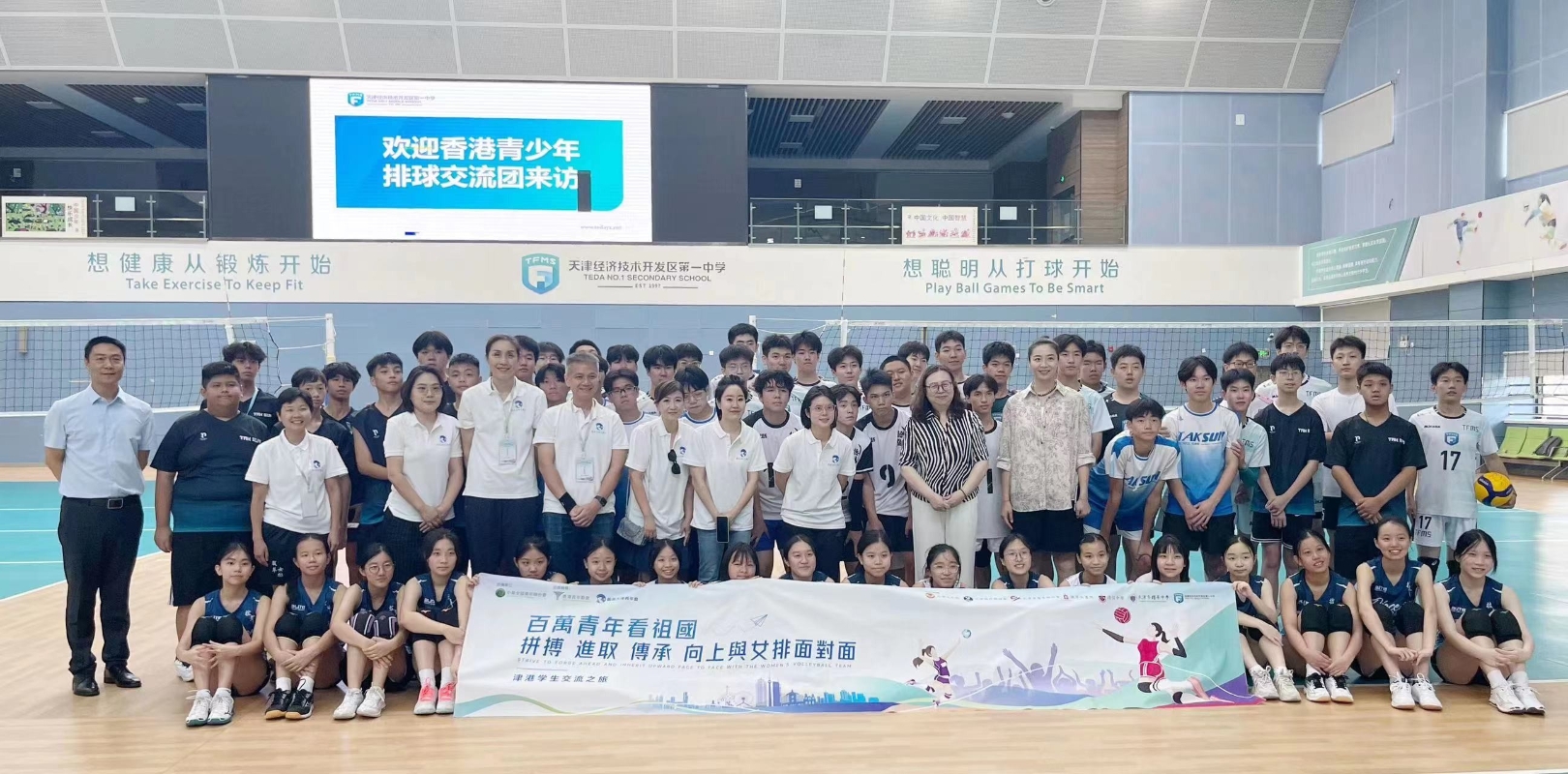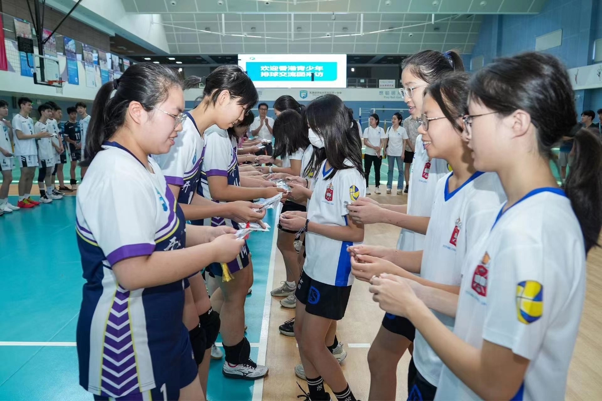 (回歸27年)津港青少年排球交流活動繪兩地“同心圓”香港新聞網7月3日電 “我們香港年輕一代要秉承中國女排精神,錘鍊過硬本領,厚植家國情懷,積極投身祖國建設,共同編織起中華民族偉大復興的‘中國夢’。”香港拔萃女書院學生湯楚兒興奮地對記者說。25日至28日,在中華全國青年聯合會指導下,香港青年聯合會與香港天津青年會主辦的拼搏進取傳承向上與女排面對面“百萬青年看祖國”津港青少年排球交流活動在天津開展。40名香港德信中學和拔萃女書院中學生,在天津參訪學習,進行體育文化交流,切身感受祖國發展建設成就和中華優秀傳統文化魅力。