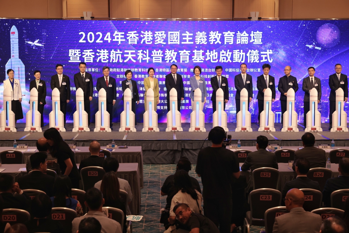 香港新聞網7月6日電(記者 謝光磊 )7月6日,2024年香港愛國主義教育論壇在香港會議展覽中心舉行,香港特區政府政務司司長陳國基、中央政府駐港聯絡辦副主任盧新寧、全國人大常委會委員李慧琼等嘉賓出席。論壇今年踏入第四年,以“弘揚科學家精神 陶鑄新時代棟樑”為主題,攜手社會各界,弘揚科學家精神。論壇當日同步舉行“香港航天科普教育基地”啟動儀式。