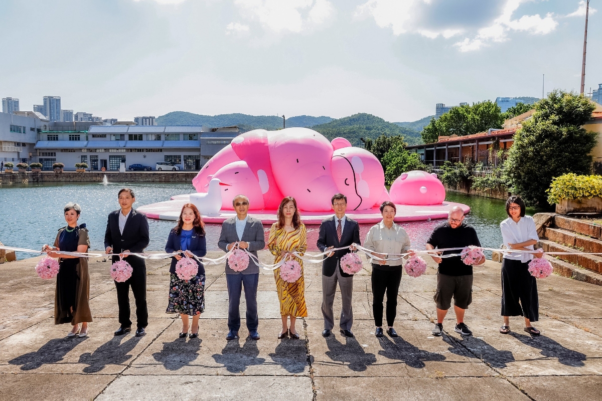 主禮嘉賓為媽閣塘的大型公共充氣藝術裝置《BERTILO粉小胖游塘》舉行開幕剪綵儀式。 為讓大眾更好認識媽閣塘片區的活化發展以及“全民共建”的活力,美高梅於7月5日假海事工房2號舉行“媽閣塘片區之《一起嗨·FUN夏》系列活動介紹會”,由一眾合作夥伴於現場分享今次片區合作的點滴和未來展望。當中,澳門插畫師協會創會會長梁子恆表示,他很高興能合辦具城規價值的視覺設計比賽,並開放予全民參與,激發全城利用藝術創意,為媽閣塘片區注入新活力。另外,澳門時裝零售品牌THE BIG APPLE聯合創辦人郭賢豪,講述如何通過今次活化合作,以新空間及新模式打破既有商業模式,在塘片區促成品牌首次“零售x藝術”跨界融合項目。主打茗茶中小企–好好喝茶的負責人陳永武則分享澳門年青人創業的機遇與挑戰,而這次參與創意餐車的合作項目,則讓其品牌的潮流茶飲版圖從舊城區擴展至塘片區。分享會獲逾80名嘉賓支持出席,包括政府代表、澳門青創及文藝界人士等。 美高梅品牌策劃高級副總裁廖頴琦表示,活化需要社區的協作,尤其媽閣塘片區是澳門全新的空間,它的活化更需“全民共建”的投進。美高梅感謝政府跨部門團隊一直給予支持,自今年初在塘片區促成了多項文藝盛事。今次,美高梅矢志加大力度聯動各界力量,並發揮企業的資源優勢,促成本地一眾創業及文藝青才開拓跨界融合的新模式,攜手為片區注入文旅資源及休閒消費配套。其實澳門的城市肌理很適合漫步探索,期望市民和旅客多用Citywalk的方式,走進媽閣塘片區,細味感受它在各方努力下的發展蛻變,以及當中濃厚的澳門“人情味”。 澳門特區政府文化局局長梁惠敏表示,以往的活化項目通常只有政府和業主參與。現在,因為美高梅和很多中小企一起發揮所長,參與活化,為活化媽閣塘片區貢獻力量,活化的合作層次比以往更深,活化模式也更新穎。雖然媽閣塘片區是歷史片區,但它的未來有很多可能性,這裡可舉辦很多充滿創意的項目。相信未來媽閣塘片區新穎的活化項目可結合這區的歷史文化底蘊,逐漸為這區注入新動力。 分享會完畢後,美高梅於媽閣塘為系列頭炮活動—大型公共充氣藝術裝置《BERTILO粉小胖游塘》舉行開幕儀式,由澳門特別行政區政府社會文化司司長歐陽瑜;中央人民政府駐澳門特別行政區聯絡辦公室宣傳文化部副部長殷汝濤;社會文化司司長辦公室主任何鈺珊;文化局局長梁惠敏;旅遊局代局長許耀明;《BERTILO粉小胖游塘》作品創始組合Bertil Butturini 及 Jingo Li ;美高梅中國控股有限公司總裁及執行董事馮小峰;以及美高梅品牌策劃高級副總裁廖頴琦進行剪綵儀式。兩位藝術家隨後分享他們專程為媽閣塘量身創作的公共藝術理念。