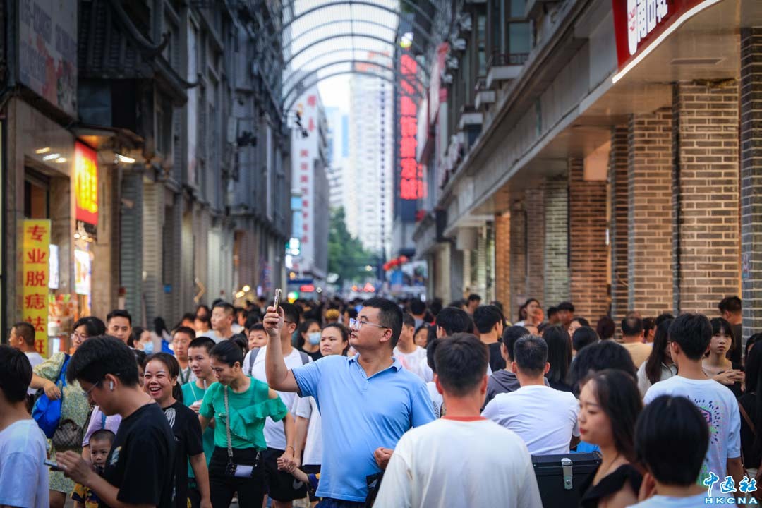 7月15日,中國國家統計局發布數據,初步核算,上半年中國國內生產總值616836億元人民幣(約合8.5萬億美元),按不變價格計算,同比增長5%。資料圖為深圳東門一帶人山人海。(香港中通社記者 許其皓攝)