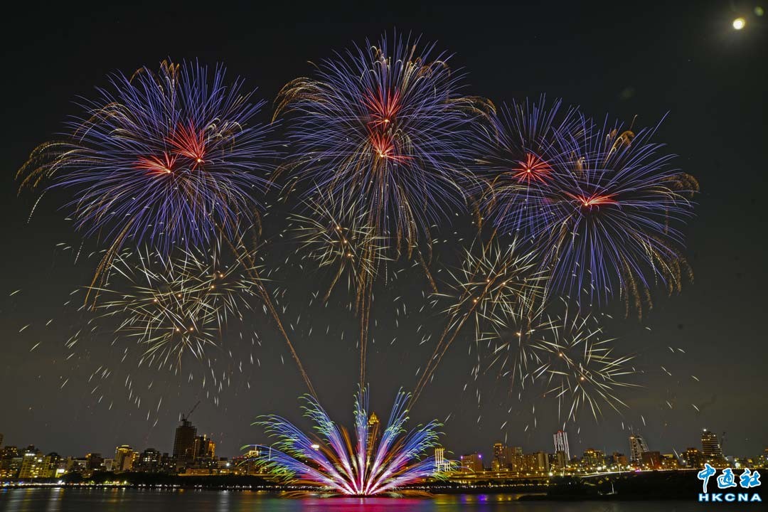 台灣2024大稻埕夏日節煙火秀從7月17日、7月24日、7月31日、8月10日七夕情人節的當天晚間8時施放煙火,前3場為300秒煙火展演,七夕壓軸場更長達480秒。 香港中通社圖片