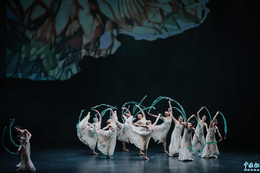 為促進中華文化發展與推廣工作,在香港文化體育及旅遊局和康文署的支持下,香港文聯組織香港文化藝術界同仁策劃舉辦了8項弘揚中華文化的文藝活動,作為2024年《中華文化節》的重要組成部分。7月18日,《舞韻華章》於香港沙田大會堂演出,現場座無虛席,氣氛熱鬧。是次舞蹈演出以匯聚古今、融會中西舞蹈文化的精髓,精選獲獎作品,由香港多個舞蹈團體聯合演出。圖為香港舞蹈團帶來作品《廿四節氣》選段〈清明〉。(香港中通社記者 謝光磊攝)