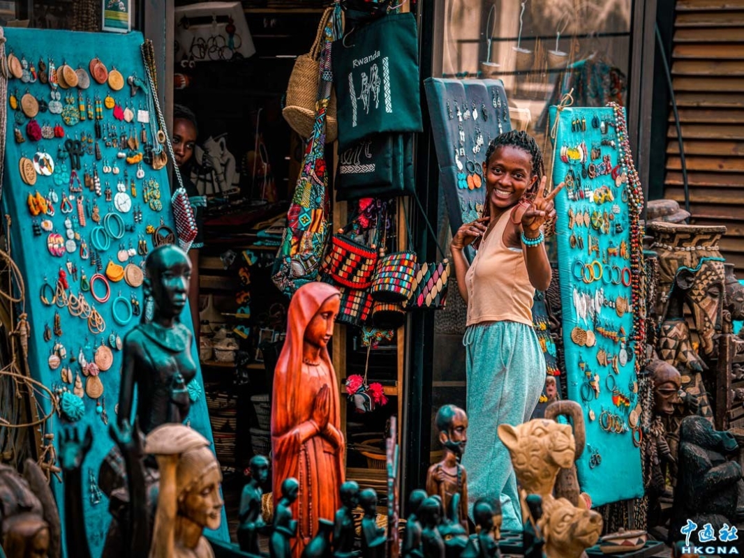 位於非洲盧旺達首都基加利的市中心,有一條名為“Imbuga City Walk”的步行街。街道不長,兩邊不少當地特色手作小店,有不少當地人來此購物和休閑,是符合當下“city walk”城市漫步的好地點。(香港中通社記者 曹文毓攝)