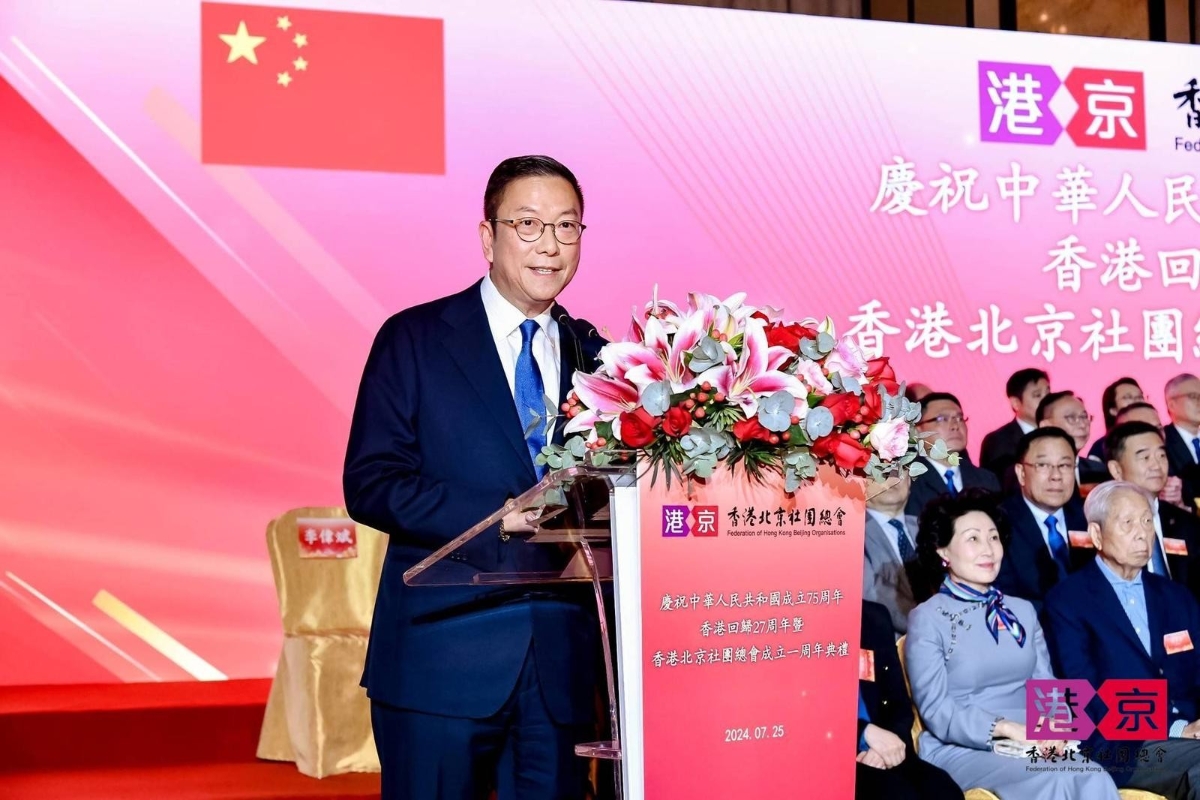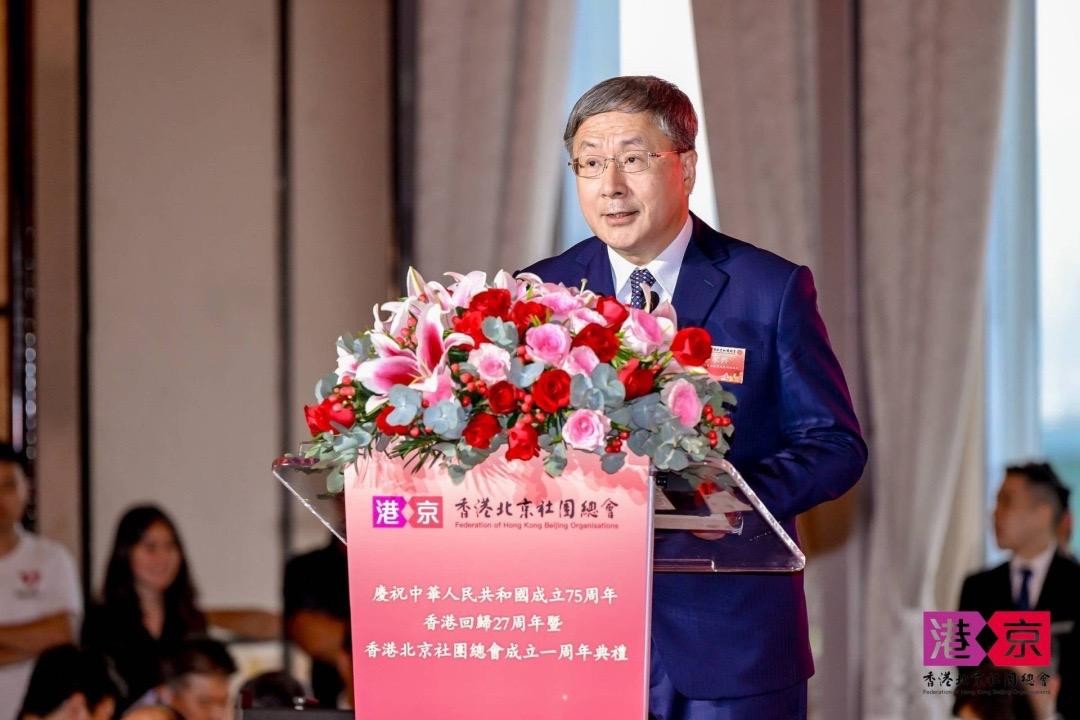 香港新聞網7月25日電 香港北京社團總會25日隆重舉行“慶祝中華人民共和國成立75周年、香港回歸27周年暨香港北京社團總會成立1周年典禮”。 北京海外聯誼會會長楊晉柏,中央政府駐港聯絡辦公室副主任何靖,香港特別行政區政府政務司副司長卓永興,北京海外聯誼會副會長黃克瀛,外交部駐港特派員公署副特派員李永勝,駐港國家安全公署局長鄧建偉,香港特別行政區政府政制及內地事務局局長曾國衛,香港特別行政區政府民政及青年事務局局長麥美娟,中央政府駐港聯絡辦公室社團聯絡部部長鐘吉昌等應邀擔任主禮嘉賓;多名中央駐港機構代表、特區政府官員、港區全國人大代表、全國政協委員、立法會議員及各友好社團首長等各界來賓蒞臨典禮。