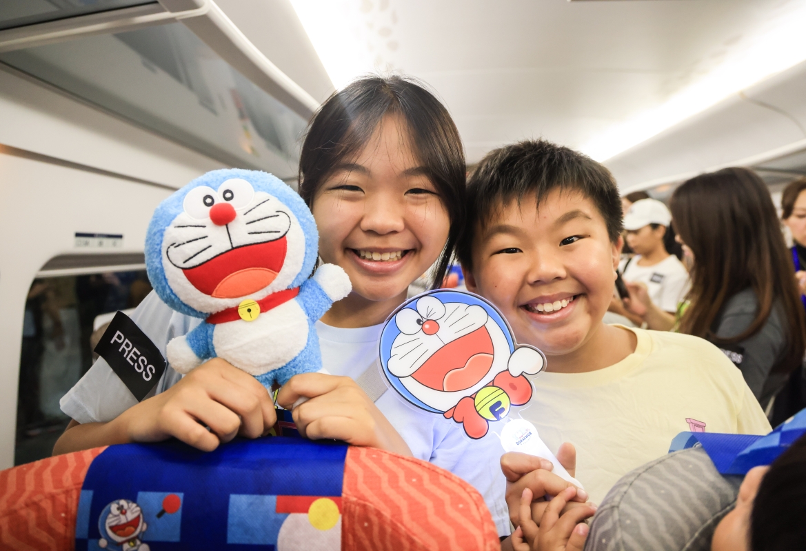 首列以“多啦A夢”為主題的粵港跨境高鐵啟動,由7月27日起接載旅客穿梭香港、深圳和廣州 【編輯:曹文毓】