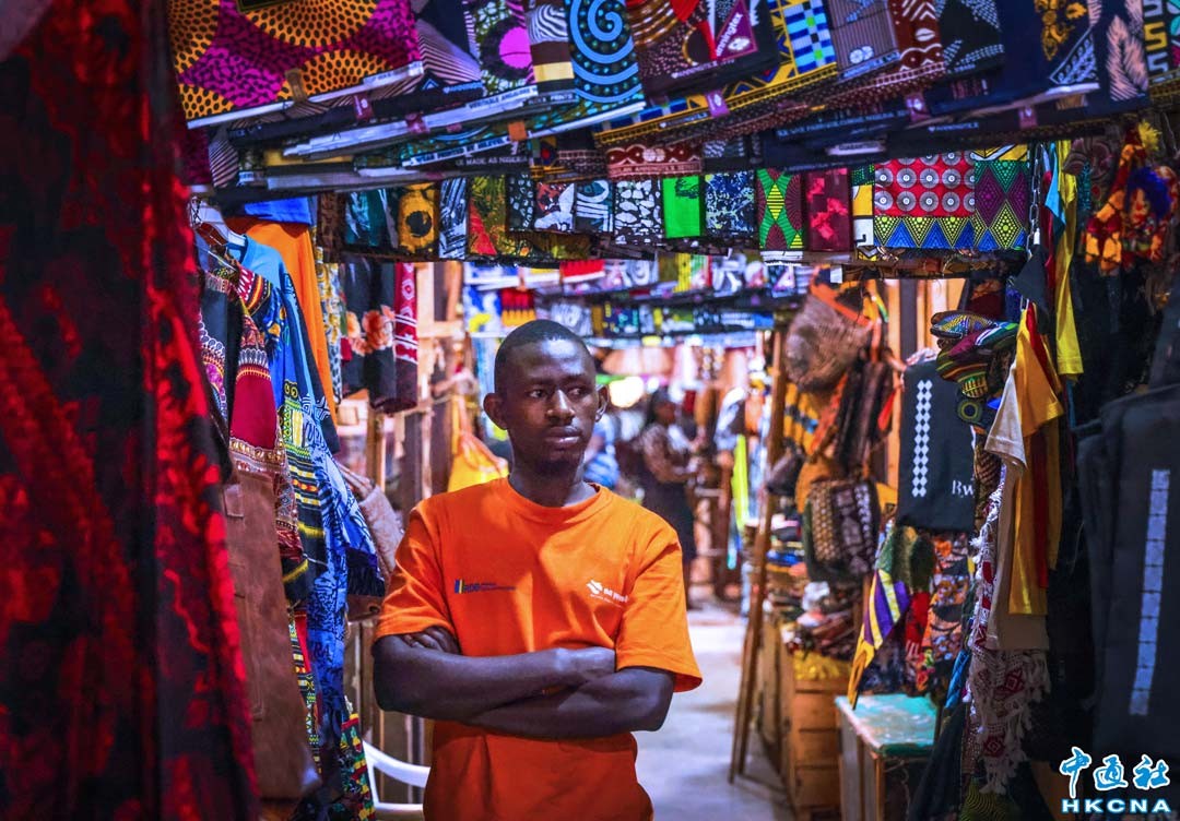 在非洲盧旺達首都基加利市區的“kimironko market”是本地著名的大型市集,幾乎可購買到一切生活所需,囊括蔬果、布料,紀念品以及各類生活用品,不少旅客會選擇現場購買一件布料,裁縫現場量身訂製只需1小時。(香港中通社記者 曹文毓攝)