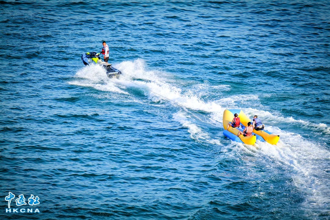 7月23日,夏日炎炎,大灣區遊客在深圳大梅沙海濱公園浴場遊玩。(聞子 攝)