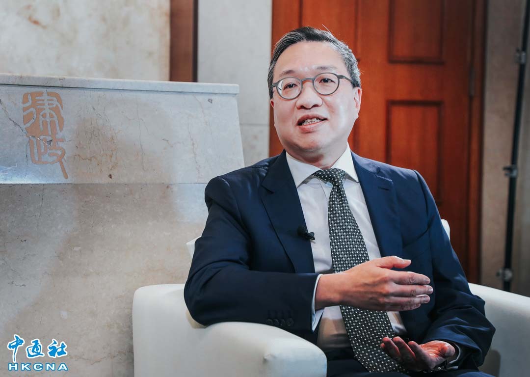 7月23日,香港回歸27周年,亦是本屆特區政府上任兩年,律政司司長林定國27日接受香港中通社、香港新聞網專訪。他談到法治教育時說,2019年香港發生的社會運動令他反思維護法治環境最關鍵的是社會大眾的法治意識,而尊重香港特區的法治,離不開國家認同。 (香港中通社記者 洪少葵攝)
