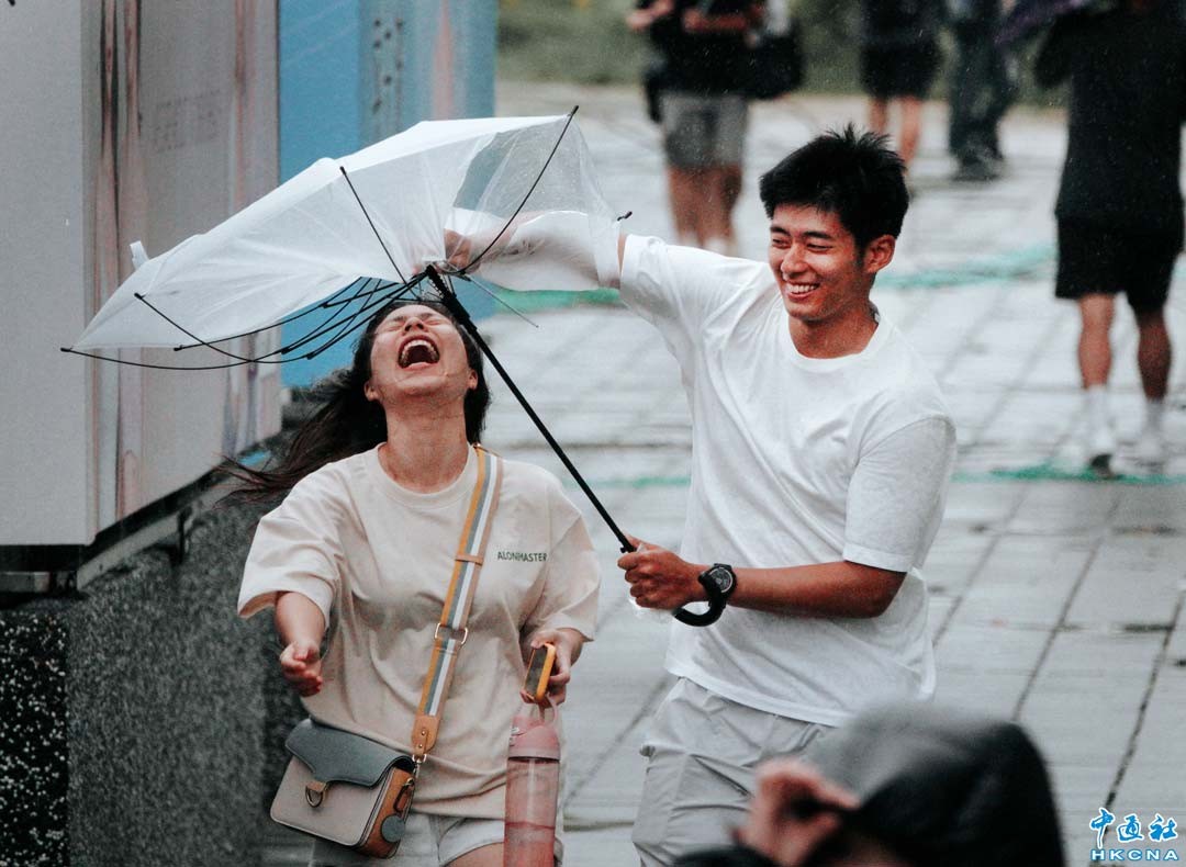 颱風“格美”直撲台灣,路徑與2009年“莫拉克”颱風接近,高雄市區7月24日一整天風強雨驟,民眾撐傘外出一下子雨傘就被吹爛,寸步難行,連移動都有難度,還有機車騎士路經高樓風口時被大風吹到前進不得,十分狼狽。 香港中通社圖片