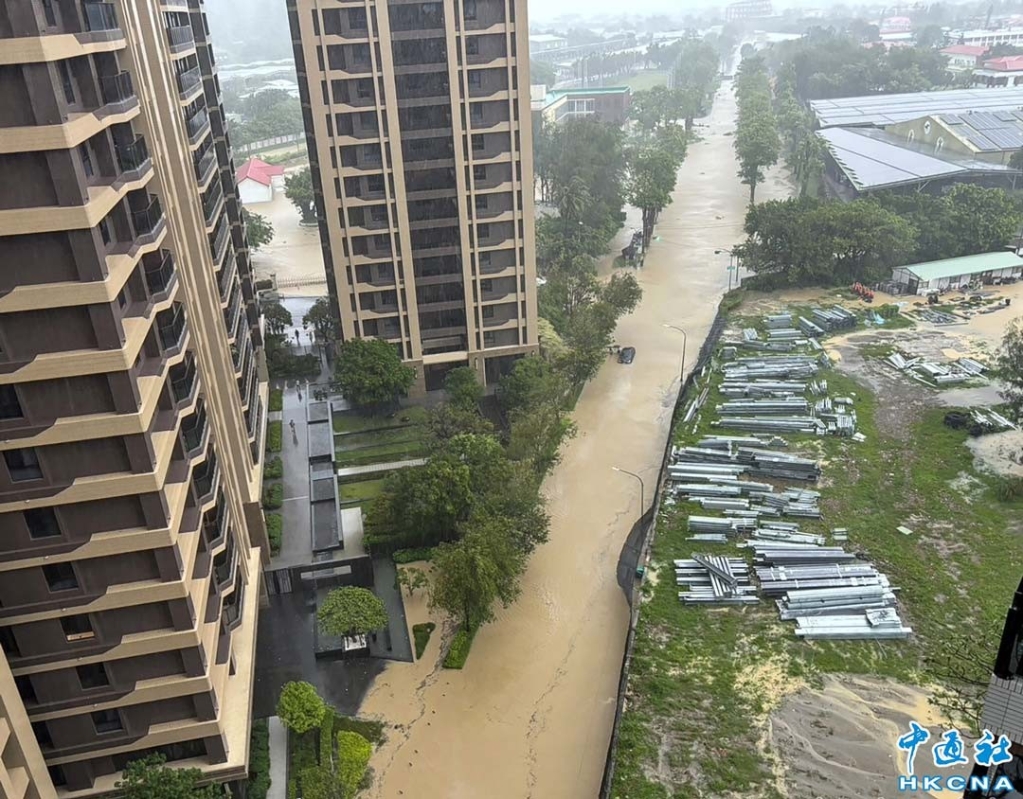 颱風“格美”直撲台灣,7月25日凌晨起台灣高雄降下暴雨,多處地方淹水,鼓山美術館豪宅區附近的翠華路淹成一片“黃河”,積水約有一顆汽車輪胎高,鼓山分局前方水淹及腰,預估10點過後滿潮,水位恐更高,警方已在淹水路段拉設封鎖線,阻止其他車輛再駛入。香港中通社圖片