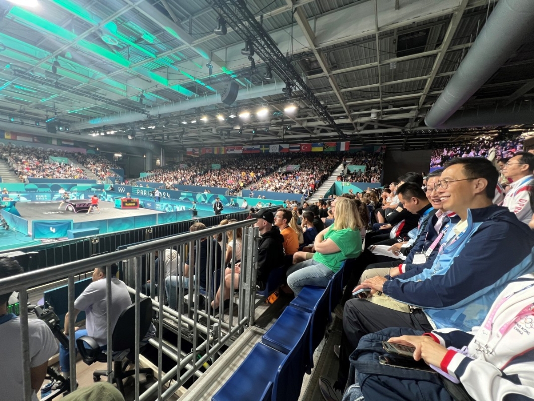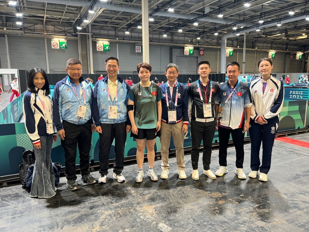 香港文化體育及旅遊局局長楊潤雄(右一)到訪巴黎乒乓球比賽館,觀看香港乒乓球運動員參賽,為他們打氣。(圖源:香港特區政府新聞處) 楊潤雄續指,運動員的教練和支援團隊的配合、以至香港體育學院、中國香港體育協會暨奧林匹克委員會以及各體育總會的支持,以及運動員家人的鼓勵和信任也是重要的關鍵。特區政府會繼續全力支持香港運動員和他們的團隊,在巴黎奧運爭取佳績。 【編輯:王瑶】