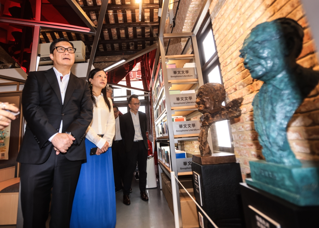 香港特區保安局鄧炳強局長一行立秋之日𦲷臨香港文學舘參觀交流