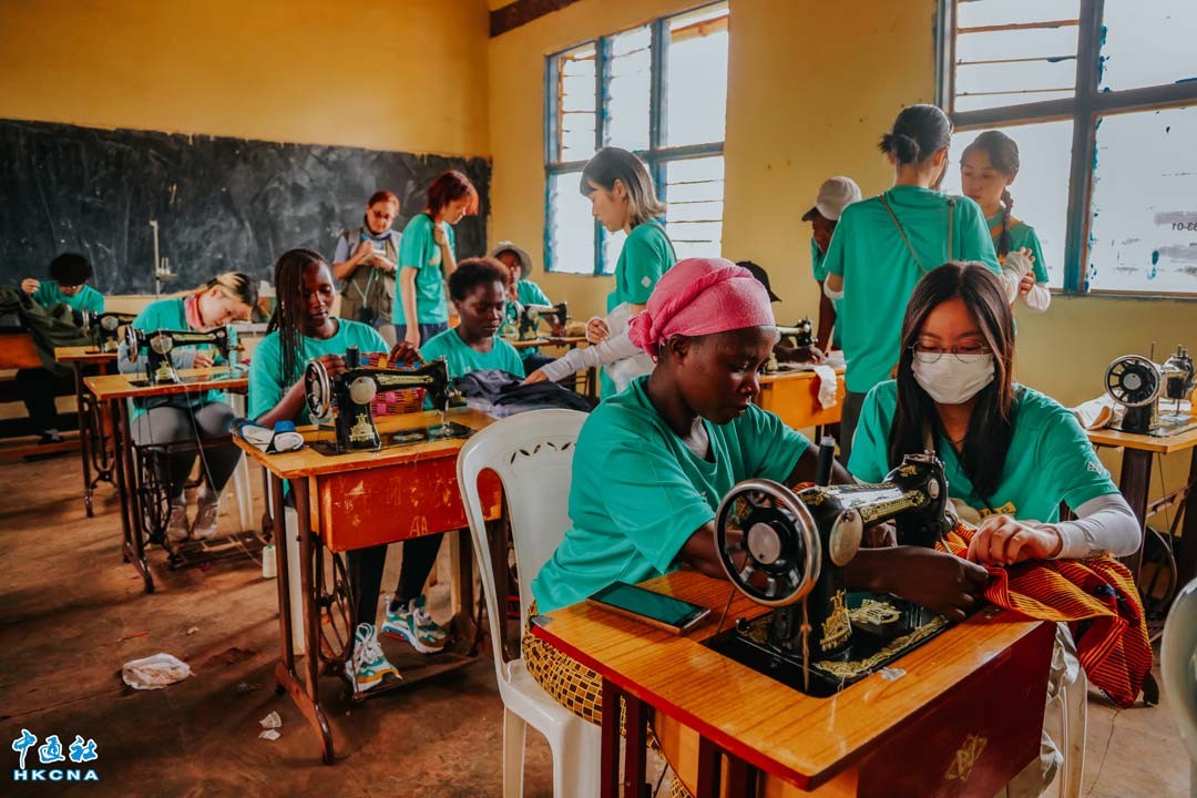 踏入第11年,今年理大在原有由電機及電子工程學系和電子計算學系開辦的“太陽能發電系統項目”基礎上,新增了由時裝及紡織學院開辦的“時裝設計項目”,共有超過110名師生及教職員遠赴盧旺達。在14天中,他們分別走遍盧旺達盧瓦馬加納地區的八個村莊,為當地的村民開發綠色能源解決方案,給超過400個家庭安裝太陽能發電系統,和當地村民合作設計並親手縫製時尚服飾,舉辦別開生面的“T台服裝秀”。圖爲“時裝設計項目”。(香港中通社記者 曹文毓攝)