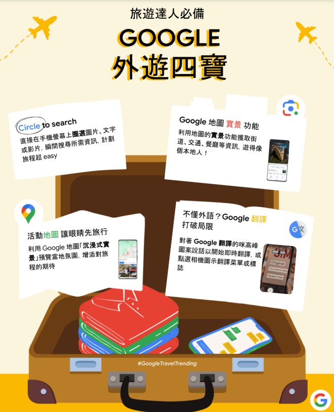 Google建議大家使用不同的工具來準備行程。 總結2024年香港旅遊界熱門3大趨勢︰ 沉浸式美食文化體驗︰香港外遊人士渴望透過加強與目的地的文化交流豐富的文化等交流,建立更深厚聯繫。 走進大自然探索體驗︰香港旅客愈來愈關注以可持續發展和以大自然為主題的旅遊體驗,特別是外遊時對森林浴(shinrin-yoku)的興趣顯著增加;這使香港成為全球十大最熱衷於森林浴的市場之一。