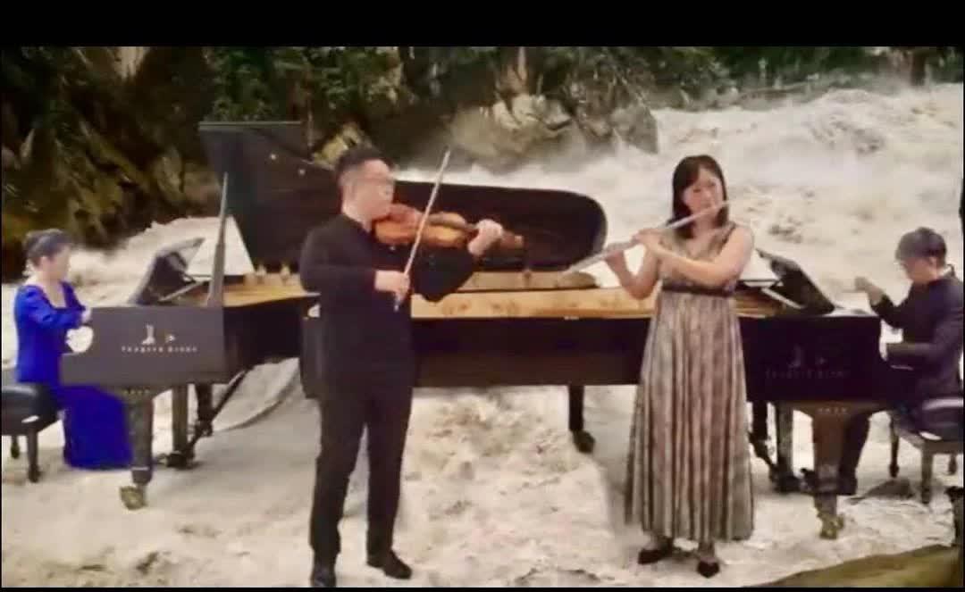 香港新聞網8月18日電 在慶祝中華人民共和國成立七十五周年這個特別的日子裏,在此推薦,為中華兒女為海內外華人華僑,曾精心演出的《長江之歌主題隨想曲》器樂合奏的曲目。由原有的雙鋼琴版升級為雙鋼琴、小提琴和長笛版,這一創新版由香港作曲家歐兆明先生創作,演奏者雙鋼琴是秦蓉、許寧,長笛楊磊,小提琴程立,這6位居港的音樂家都是中央音樂學院香港校友會的校友,他們的組合無與倫比,各自在專業領域上發揮了高水平的演出技巧,節目又得到柏斯音樂集團主席吳雅玲女士的大力支持,選用了柏斯音樂集團在湖北宜昌鋼琴生產基地自主研發的民族品牌Yangti River《長江鋼琴》演奏,這個創新組合——“長江之夢”,用音樂這個人類通用的語言向全球展示出中國山河的壯麗秀美和偉大祖國的欣欣向榮。