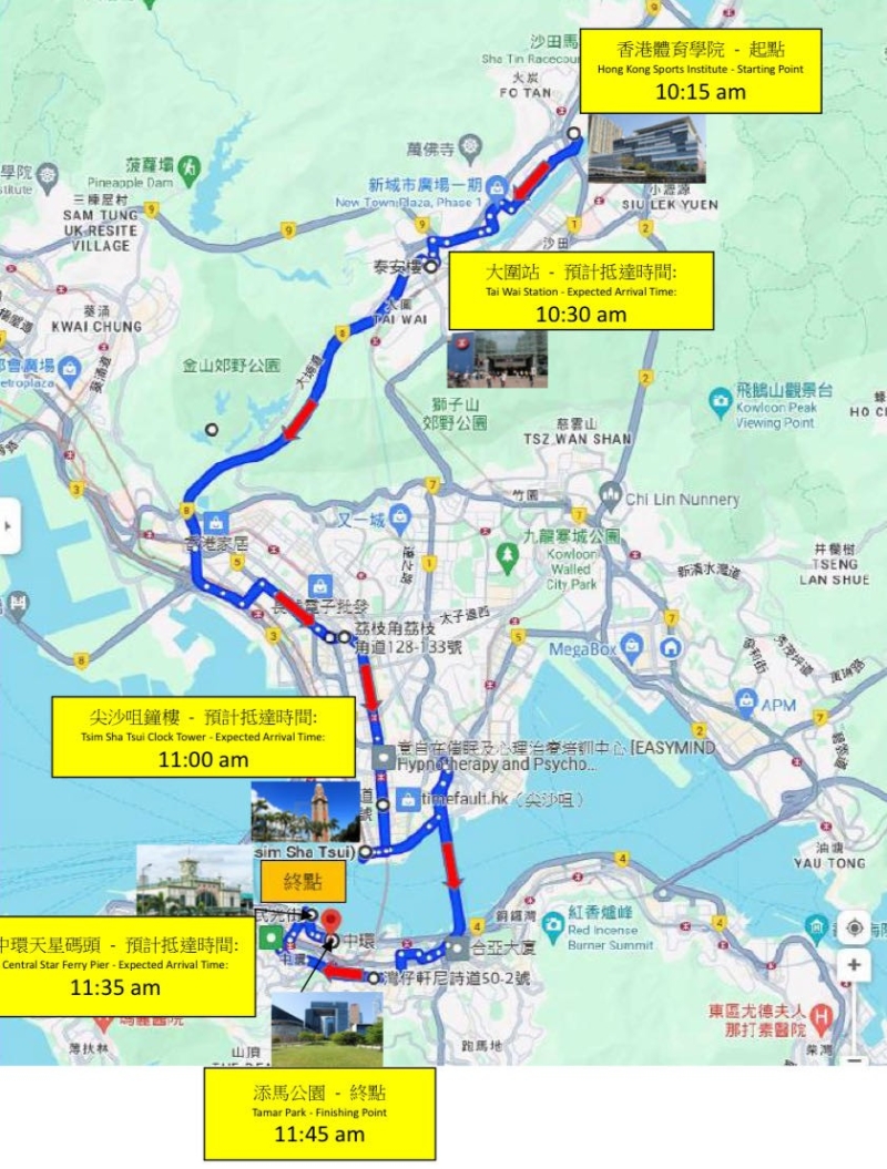 巴士巡遊的最佳觀賞位置為大圍港鐵站、尖沙咀鐘樓和中環天星碼頭。巴士於上午十時十五分由沙田香港體育學院開出,約上午十時三十分途經大圍港鐵站,於大約上午十一時抵達尖沙咀鐘樓,再經海底隧道駛至皇后大道中,約上午十一時三十五分經過中環天星碼頭,並於上午十一時四十五分左右抵達終點添馬公園。 歡迎市民在上述位置向香港運動員送上祝賀,分享他們成功挑戰自己並取得佳績的喜悅。(完) 【編輯:張明臻】