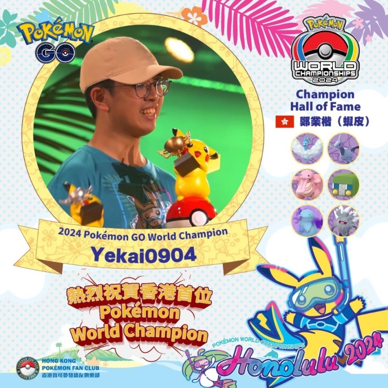 香港新聞網8月20日電 動畫《寵物小精靈》廣受粉絲喜愛,2016年推出的相關手機遊戲Pokémon GO更風靡全球。Pokémon GO世界錦標賽日前於美國夏威夷舉行,其中來自香港的16歲代表鄭業楷擊敗荷蘭選手,成為香港及亞太區首位Pokémon GO世界冠軍,獲頒2萬美元獎金。