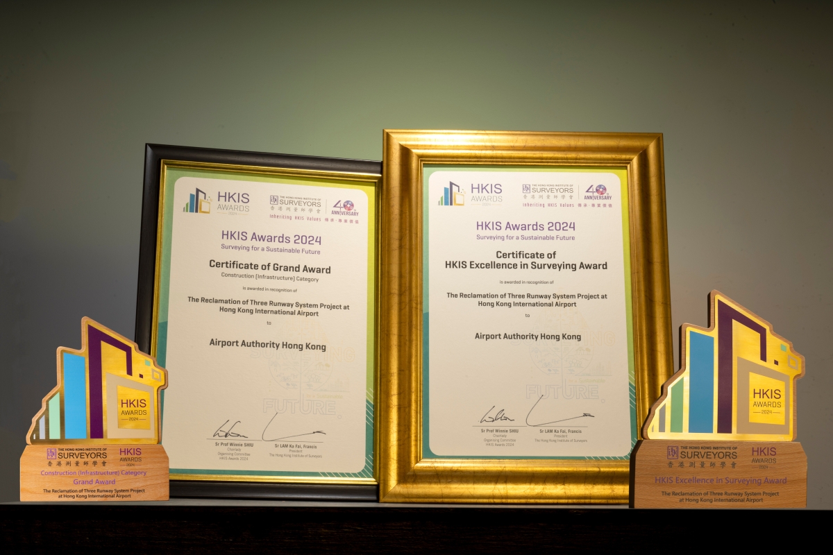 圖源:機管局網站。 此外,機管局憑藉三跑道系統項目的填海工程於“香港測量師學會大獎2024”中榮獲“卓越測量項目獎”及“建築(基建)工程榮譽大獎”。“香港測量師學會大獎”旨在表揚測量師的卓越成就,以及推動香港的可持續發展。 機管局三跑道項目執行總監梁景然表示:“我們很榮幸獲頒發這些殊榮。擴建香港國際機場成為三跑道系統的工作,包括填海拓地650公頃。儘管我們面對疫情等重重挑戰,但憑藉團隊的專業知識、改革創新及堅持不懈的精神,填海工程如期完成。團隊傑出的表現因而獲得獎項以作嘉許。” (完) 【編輯:譚暢】