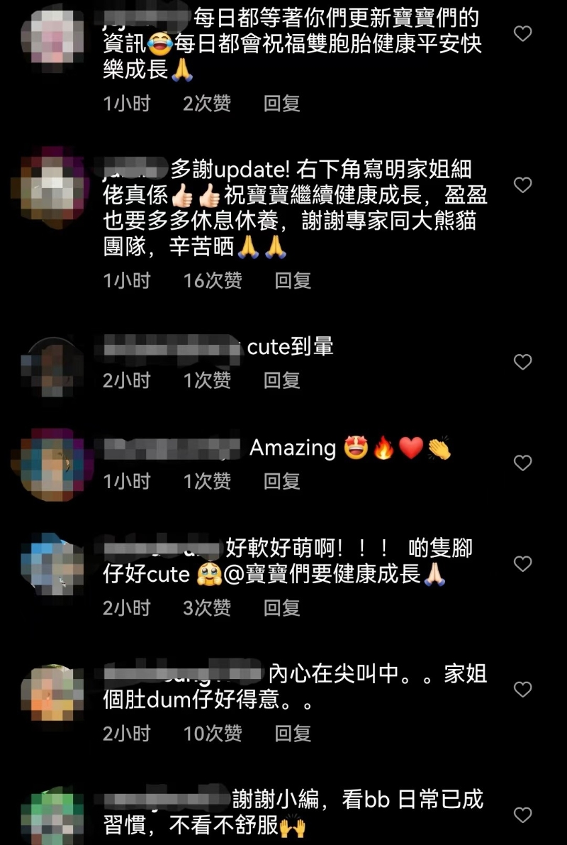香港新聞網8月20日電 中央贈港大熊貓“盈盈”在香港海洋公園誕下一對龍鳳胎。20日,園方再在社交媒體頁發布4張大熊貓寶寶的生活照,大量網友紛紛發評:“好軟好萌!”“終於有更多更新啦”“看bb(寶寶)日常已成習慣,不看不舒服”。
