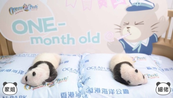 從香港大熊貓官方專頁的照片中可以看出,大熊貓姐姐有著軟乎乎的小肚腩,高舉雙手躺在工作人員的手掌中。弟弟則躲在小被窩裡,伸出一隻小手,好像在跟鏡頭打招呼。圖片右下角,則以文字標出“家姐(姐姐)”和“細佬(弟弟)”,有網友評論指,稱呼夠“港式親切”。(完)