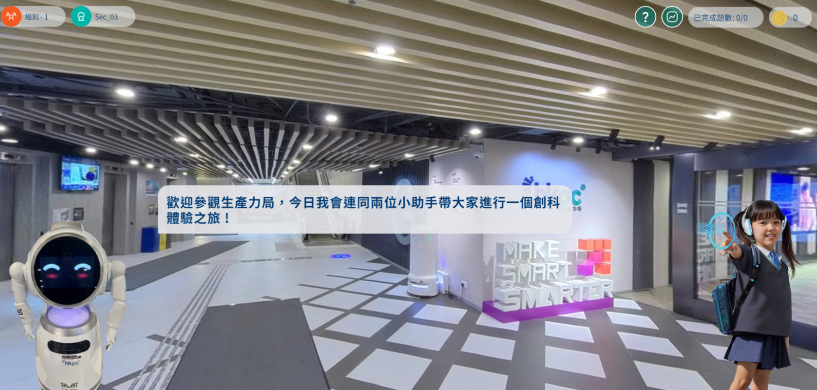 “TecHunt”是一項虛擬尋寶游戲,讓學生在360VR虛擬實驗室或展館中,使用手機或平板電腦身歷其境地探索。過程中,參加者需在游戲裡尋找金幣,通過短片或文字介紹,了解展品背後的科學原理和技術應用,成功回答問題便會獲得金幣,得分最高者勝出。游戲介紹了生產力局多個全新科技展館,包括新質生產力展館、人工智能應用展館、食品未來科技館、智能穿戴及鐘錶科技中心,以及香港智能自動化技術應用聯合研究中心等。生產力學院期望學生可在虛擬游戲中認識這些前沿技術,了解科技如何改善生活,推動智慧城市發展,并喚起他們對創科的興趣。