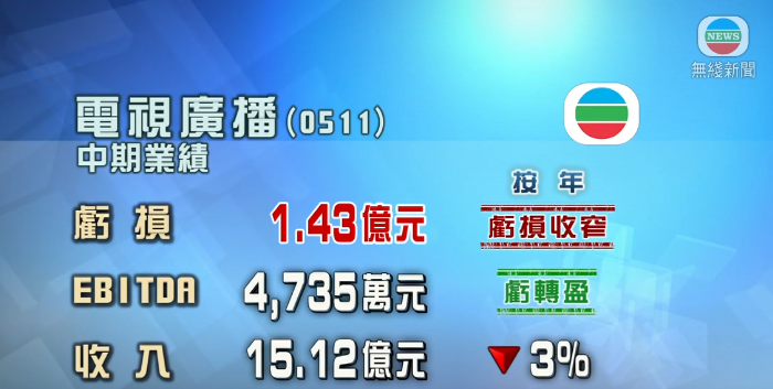 香港TVB半年虧損收窄65% 內地業務收入增分享到: