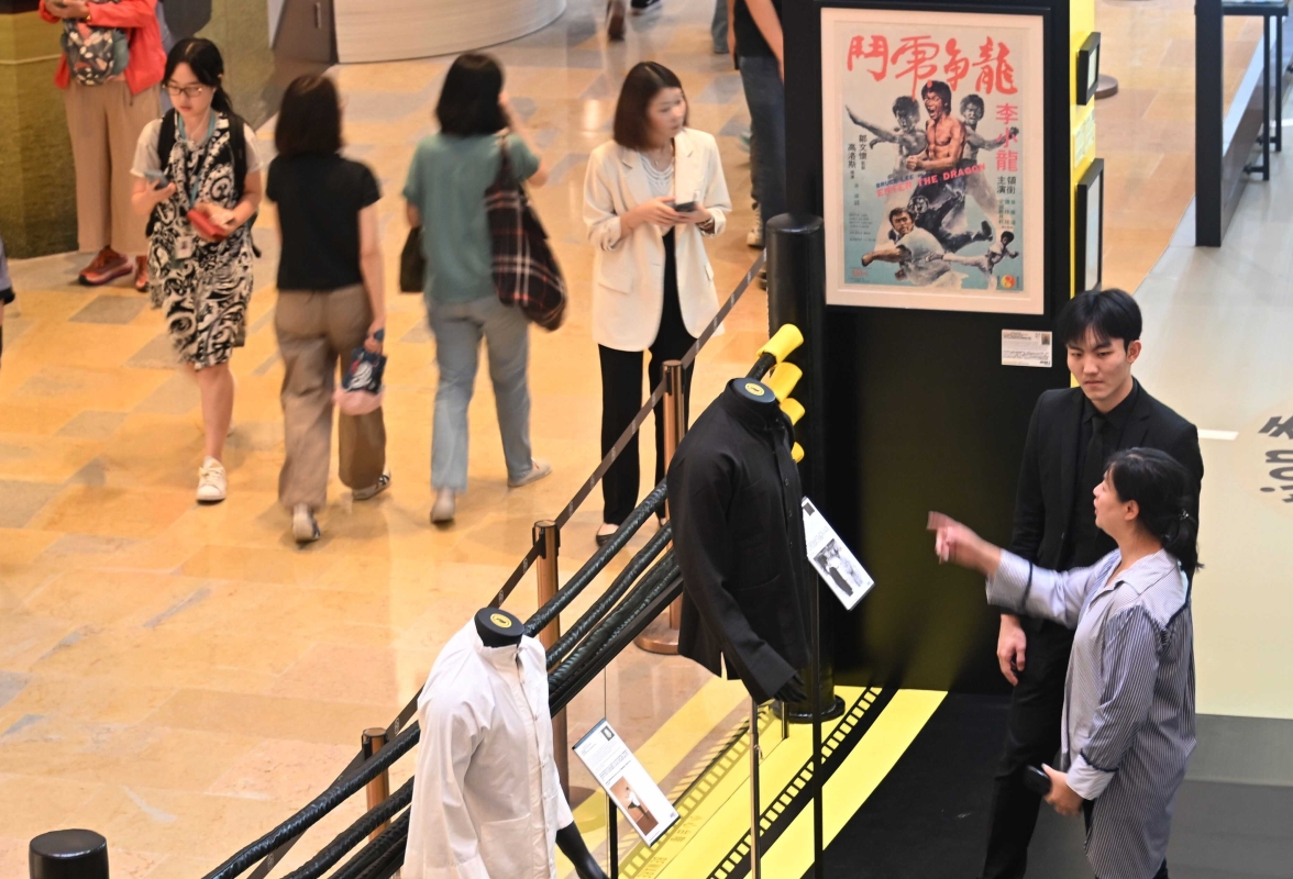 媒體記者在太古廣場率先參觀“武動傳奇:王者風範”拍賣李小龍珍品