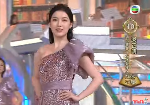 圖源:電視截圖。 15位候選人中,十強佳麗名單公布,分別是2號倪樂琳、3號王汛文、4號謝淑怡、7號秦冀雯、8號盧凱怡、10號吳芷靖、11號梁嘉莹、12號鍾翠詩、14號楊梓瑤及15號俞可程。
