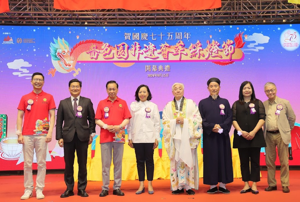 主辦方圖片 開幕典禮邀請到民政及青年事務局局長麥美娟女士, SBS, JP、中國道教協會副會長孟至嶺道長、中聯辦協調部副部長陳澤濤先生、黃大仙民政事務專員胡鉅華先生, JP、非物質文化遺產辦事處總監何惠儀女士、資深粵劇表演藝術家阮兆輝先生, BBS, BH、嗇色園黃大仙祠監院李耀輝(義覺)道長, MH 及嗇色園主席黎澤森先生蒞臨主禮。 主禮嘉賓由銀樂隊引領進場後,首先奏唱國歌,然後由喜慶熱鬧的非遺項目表演—舞麒麟(香港)為開幕典禮揭開序幕。嗇色園主席黎澤森先生致辭歡迎嘉賓蒞臨,主禮嘉賓民政及青年事務局局長麥美娟女士亦致辭祝賀。兩項國家級非遺項目—高蹺(河北)及變臉(四川)先後表演,為典禮氣氛推上高峰。嗇色園黃大仙祠監院李耀輝(義覺)道長致謝辭後,一眾主禮嘉賓移步到嗇色園黃大仙祠正門主持亮燈儀式,正門中式大花牌、園內綵燈隨即亮起,象徵一連三星期的“賀國慶七十五周年 嗇色園非遺薈萃綵燈節”正式開幕。 典禮結束後,首場國家級非物質文化遺產表演項目——來自廣東的“陸豐皮影戲”於戲棚演出,讓公眾人士觀賞。 綵燈節期間(9月15日至10月6日),黃大仙祠每天延長開放至晚上9 時,中秋節延長開放至晚上11 時,中秋節翌日延長開放至晚上 10時。(完) 【編輯:徐嘉儀】
