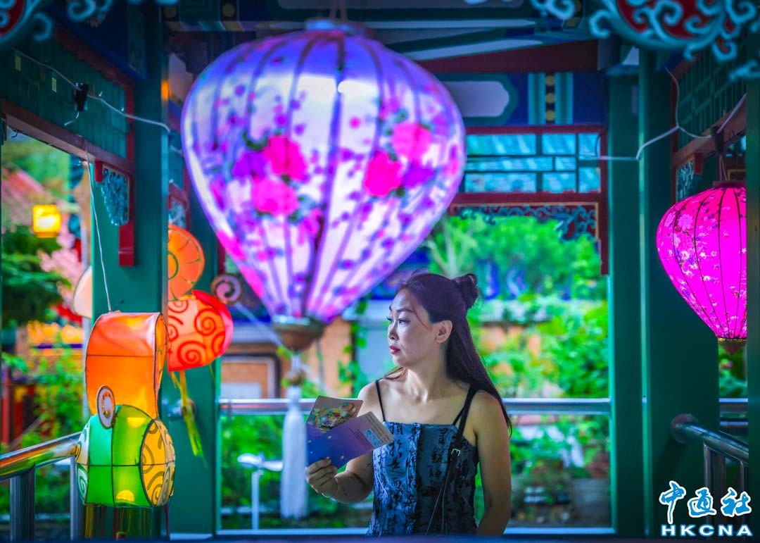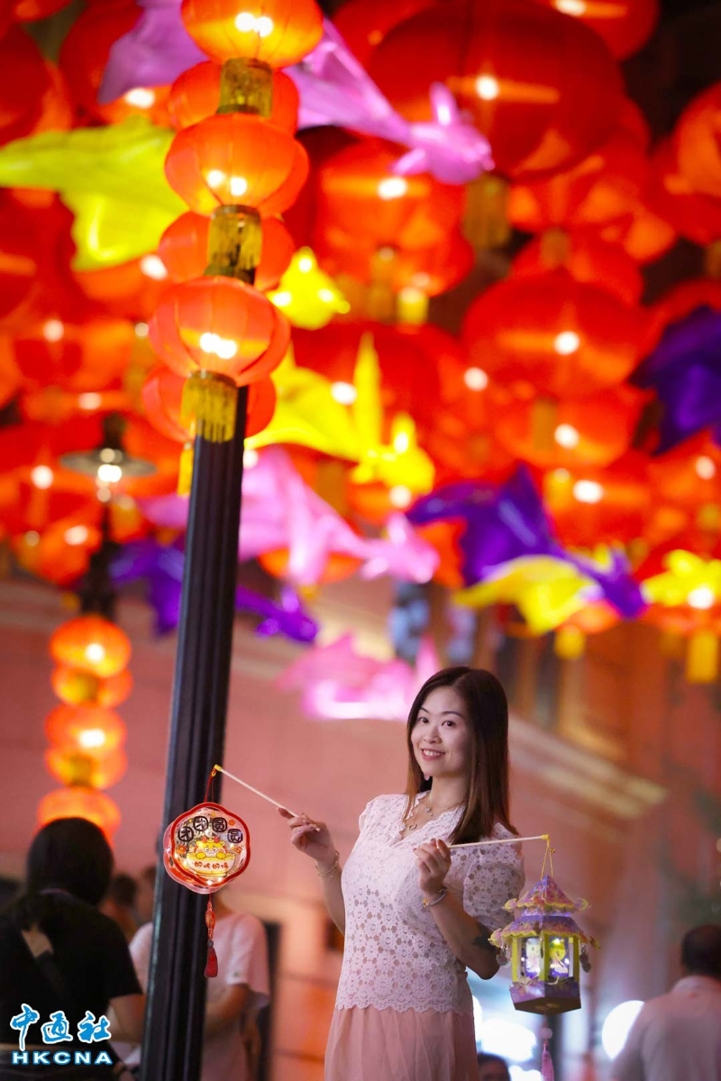9月17日是中秋節,不少香港市民前往黃大仙祠賞燈、欣賞演出。(香港中通社記者 曹文毓)攝)