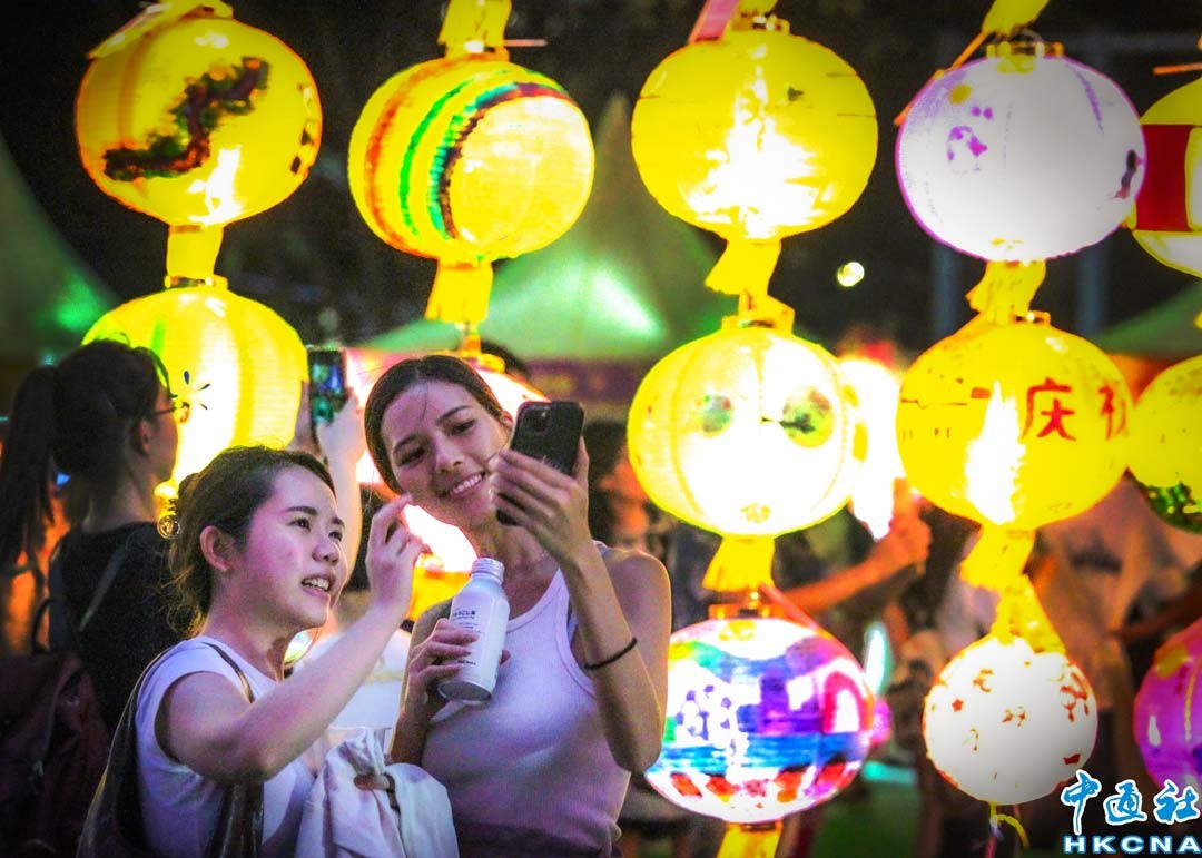 9月16日,中秋節迎月夜,大批市民和訪港遊客在維園欣賞五光十色,流光四溢的綵燈。(香港中通社記者洪少葵攝)