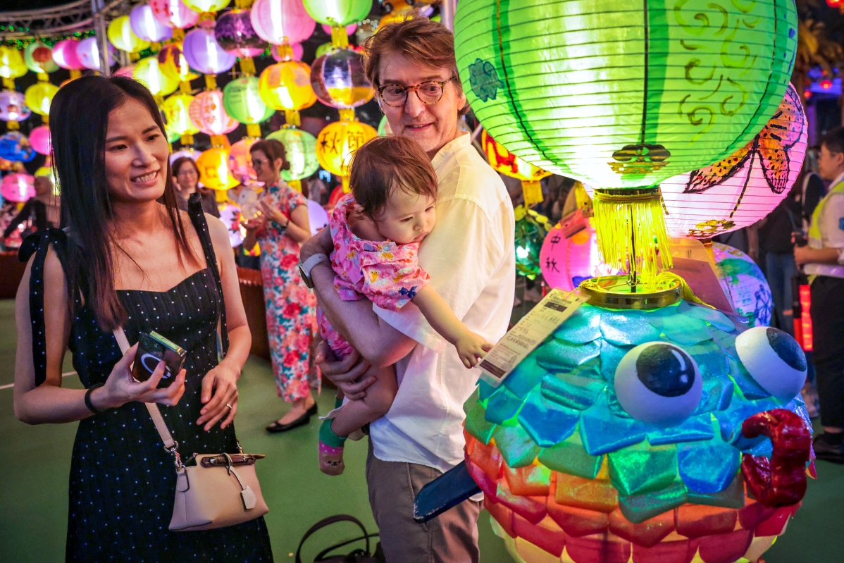 甲辰年中秋綵燈會在香港文化中心露天廣場舉行,吸引大批市民前來欣賞不同主題的璀璨綵燈。(香港中通社記者 謝光磊攝)