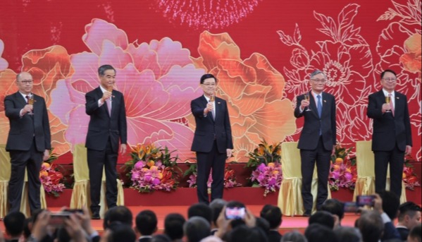香港新聞網9月25日電 香港工商界同胞慶祝國慶籌委會25日假港島香格里拉大酒店舉行“慶祝中華人民共和國成立75周年國慶酒會”。香港特別行政區行政長官李家超、中央政府駐港聯絡辦副主任尹宗華、外交部駐港特派員公署副特派員李永勝、政務司司長陳國基及立法會主席梁君彥擔任主禮嘉賓,聯同籌備委員會主席團成員、工商及社會各界友好逾500位嘉賓共賀國慶。 出席的籌委會主席團成員包括香港中華總商會會長蔡冠深及副會長曾智明,香港中國企業協會副會長兼總裁于曉、香港中華廠商聯合會會長盧金榮及副會長梁兆賢、香港工業總會主席莊子雄及常務副主席陳祖恒、香港總商會主席陳瑞娟及副主席余鵬春,以及香港地產建設商會執委會主席梁志堅及秘書長龍漢標等。 主席團執行主席蔡冠深致辭時表示,新中國成立以來,在中央政府領導和全國人民不懈努力下,國家逐步邁向全面小康、走進繁榮富強,成為世界第二大經濟體。香港在祖國快速發展進程中從不缺席,香港工商界更一直是推動國家發展的積極參與者、貢獻者和受益者。三中全會就進一步全面深化改革、推進中國式現代化高質量發展作出決定,更提到要發揮“一國兩制”制度優勢,鞏固提升香港國際金融、航運、貿易中心地位,支持港澳打造國際高端人才集聚高地,深化粵港澳大灣區合作,充分顯示中央對香港參與國家建設寄予厚望。 中央港澳辦、國務院港澳辦主任夏寶龍早前在會見行政長官李家超時亦重申,香港要乘三中全會東風,主動識變、應變、求變,在國家進一步全面深化改革、擴大高水平對外開放中展現更大作為。蔡冠深認為,香港工商界定必積極貫徹三中全會精神,主動求變、推進高質量改革、對接國家重大戰略發展,尤其在三方面扮演積極角色:一是香港專業服務在協調內地與國際市場可發揮“內聯外通”重要功能,為企業“引進來、走出去”提供專業支援;二是打造國際創新科技中心,通過加強與大灣區科研合作,形成國際科研技術與高端人才的“聚寶盆”﹔三是透過促進國際資本、技術和人才有效流動,並積極豐富人民幣投資產品與服務選擇,助力推動人民幣國際化發展。 蔡冠深呼籲香港工商界在國家進一步全面深化改革、推進高水平對外開放發展征程中要作出積極貢獻,為國家、為香港持續發展譜寫新篇章、創造新輝煌。(完) 【編輯:徐嘉儀】