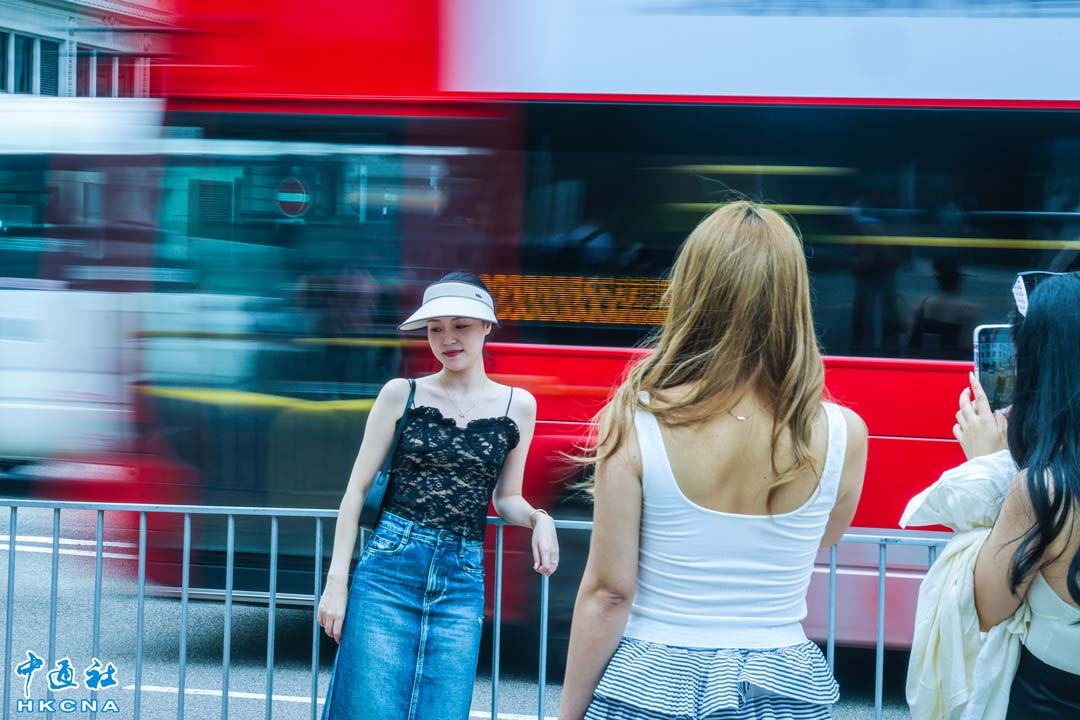 國慶節將至,香港的大街小巷紛紛掛起中華人民共和國國旗、香港特區區旗和廣告標語,放眼望去滿城“中國紅”,處處洋溢著喜慶的氛圍。圖為市民在中環遮打花園的旗海下走過。(香港中通社記者 徐文峰攝)