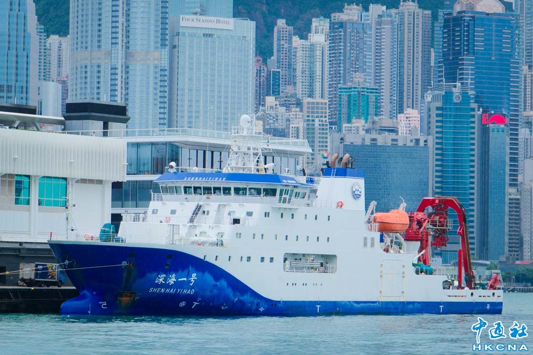 9月24日,中國科研考察船“深海一號”攜“蛟龍號”載人潛水艇抵達香港尖沙咀海運碼頭,開始對香港特區的首次訪問。(香港中通社記者 許其皓攝)