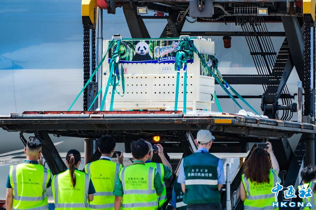 9月26日,中央政府送贈給香港的兩隻大熊貓“安安”和“可可”抵達香港,特區政府在香港國際機場舉行大熊貓抵港歡迎儀式。圖為大熊貓“安安”。(香港中通社記者 許其皓攝)