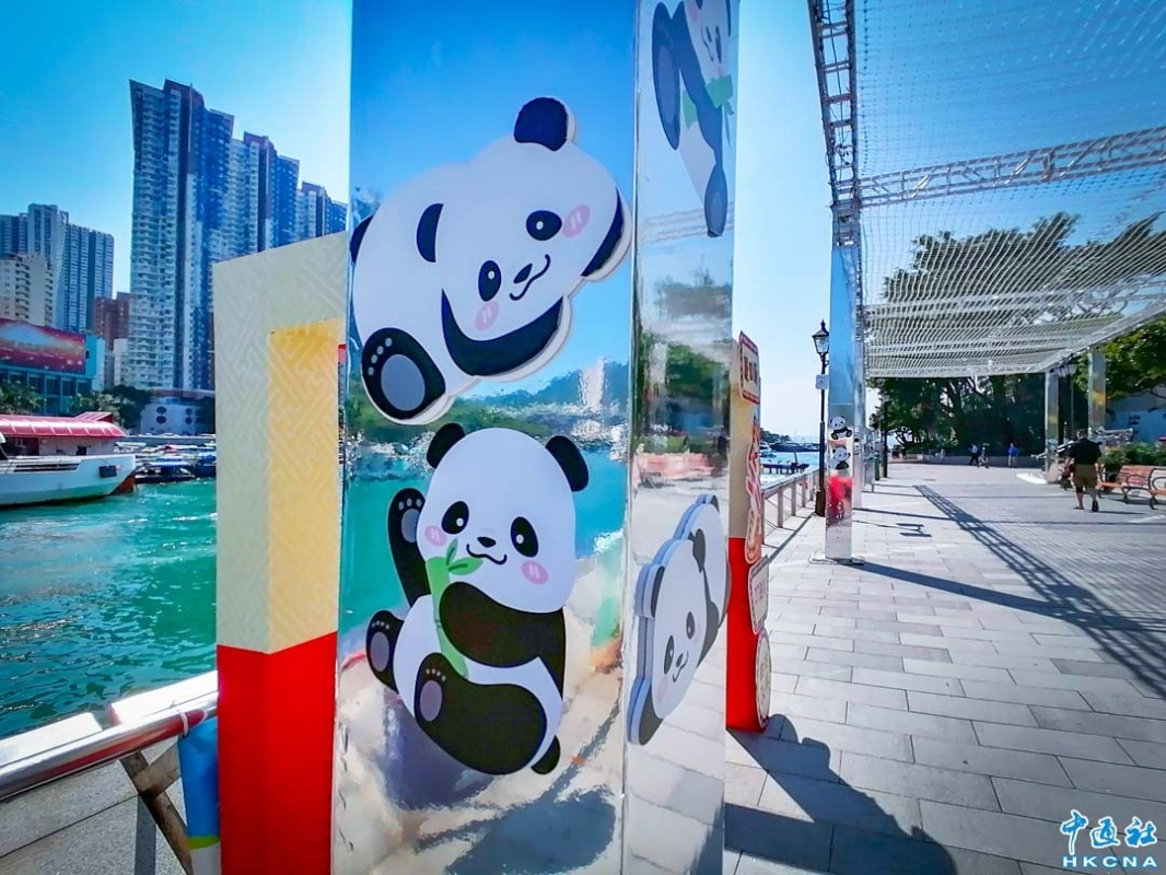 9月26日,香港南區的大街小巷處處充滿熊貓元素,迎風飄揚的彩旗和裝飾吸引眼球。當天上午中央送贈香港的兩隻大熊貓“安安”“可可”抵港,香港海洋公園屆時將有6只大熊貓常駐。海洋公園所處的香港南區早已做好迎接大熊貓的準備,熊貓元素糕點、熊貓主題巴士、熊貓彩旗等,大熊貓儼然成為“南區吉祥物”。(香港中通社記者 洪少葵攝)