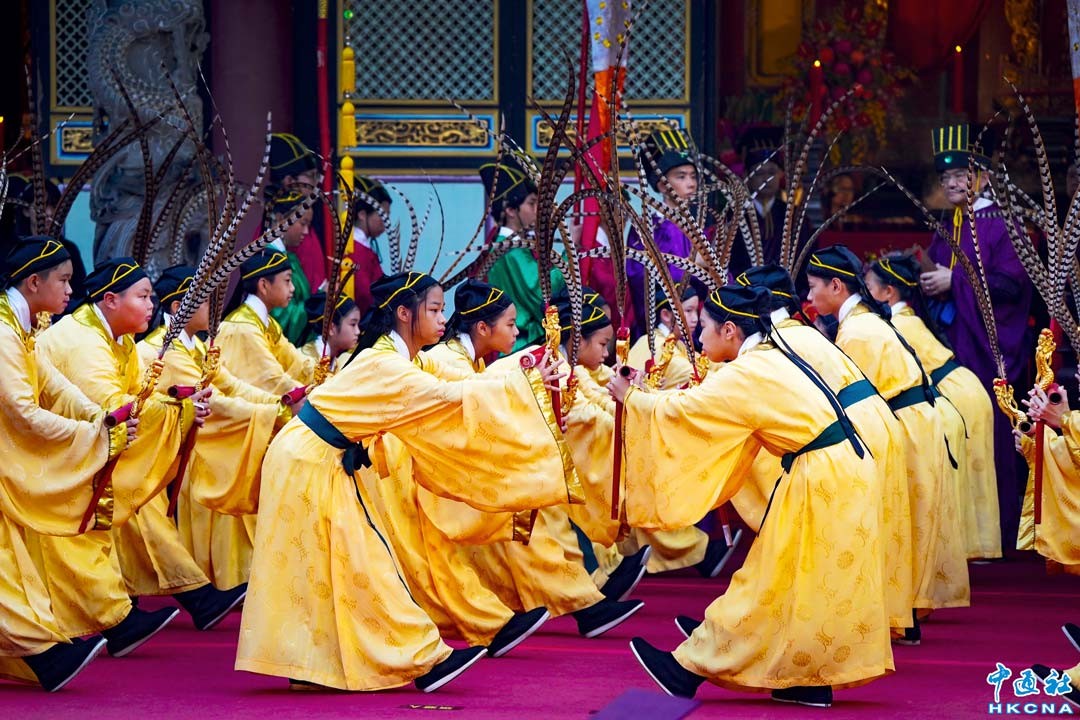 9月28日清晨,台北孔廟舉行各界紀念大成至聖先師孔子誕辰2574週年(大陸孔子誕辰2575週年)釋奠典禮,台北市大龍小學學生在大成殿跳佾舞致上最高敬意。 香港中通社圖片