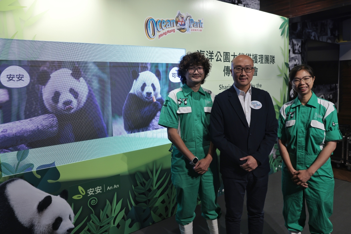 海洋公園動物及保育主管祝效忠(中)海洋公園動物部助理館長梁家綸(左)和鄧巧賢