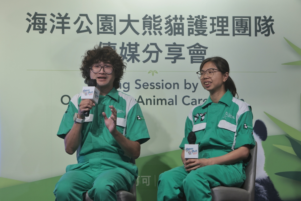 現時負責照顧“安安”、“可可”的海洋公園動物部助理館長梁家綸(左)和鄧巧賢(右),分享與牠們相處的感受 【編輯:洪少葵】