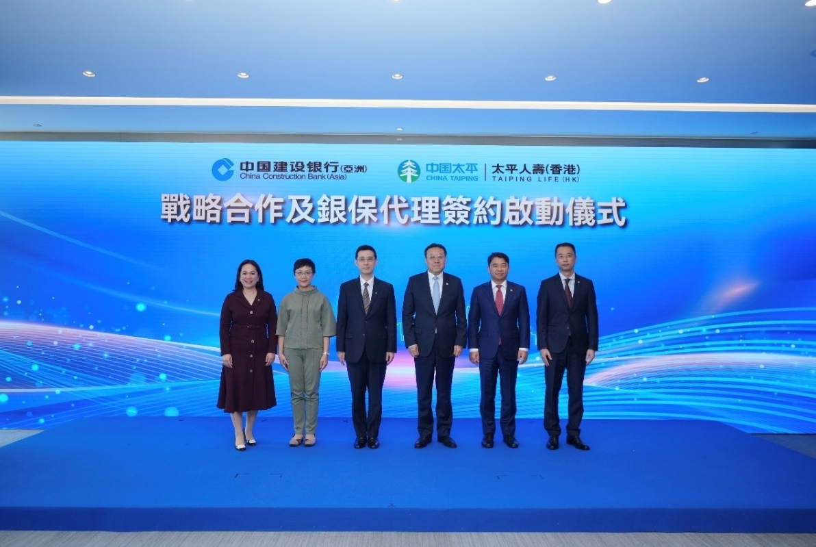 香港新聞網10月7日電 10月7日,中國建設銀行(亞洲)股份有限公司和中國太平人壽保險(香港)有限公司舉行戰略合作協定及銀保代理協定簽約啟動儀式,宣佈雙方將充分發揮各自的專業與資源優勢,加強在跨境金融、財富管理、銀保代理和養老服務及其它多個領域的合作。中國太平保險集團副董事長、總經理尹兆君先生及建行(亞洲)副董事長及行長張駿先生出席見證簽署儀式;建行(亞洲)副行長陳麗明女士及太平人壽(香港)助理總經理徐巍先生代表簽署合作協定;中國太平保險集團業務總監兼任太平人壽(香港)行政總裁李慶明先生及建行(亞洲)副行長屈詠琴女士等嘉賓出席參與簽署儀式。