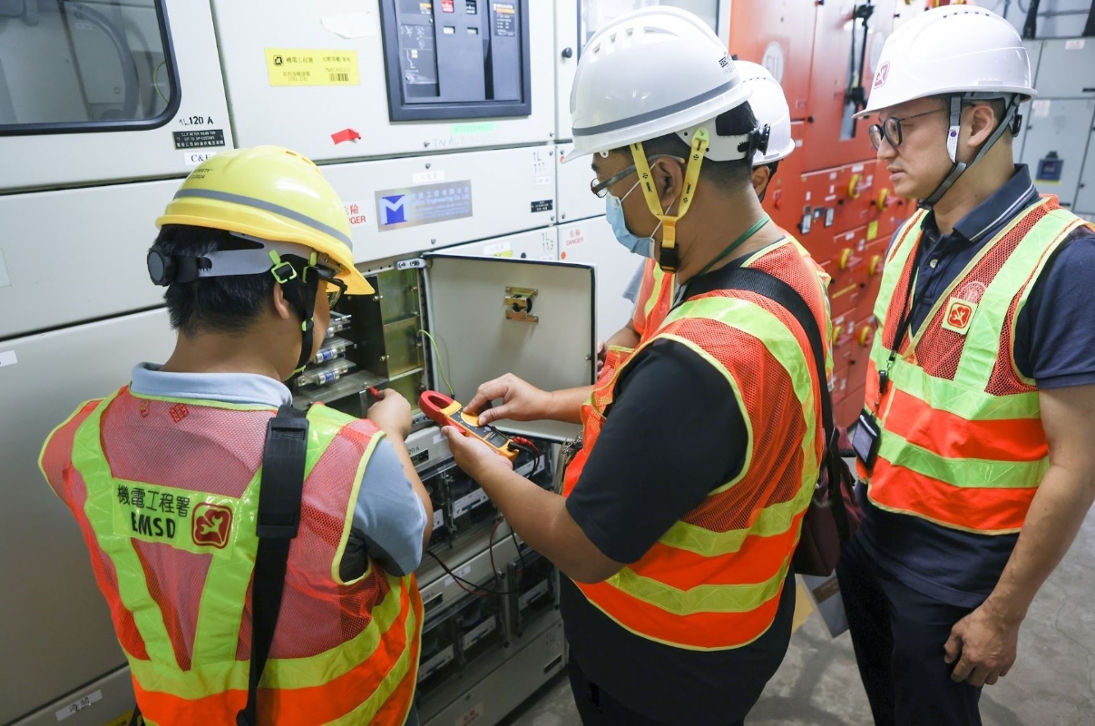圖示在模擬事故發生後機電署派員評估情況。圖源:政府新聞處 在模擬供電事故發生後,機電署隨即派員趕往現場評估情況並提供支援,中電則派出流動發電車到場提供緊急後備電力。運輸署及港鐵公司因應事故發生,檢視並調整往來羅湖與市區的列車服務。警務處則負責維持公共安全與秩序,模擬採取人群管理及疏散人流措施,並協助有需要的離境旅客返回市區或改往其他口岸。