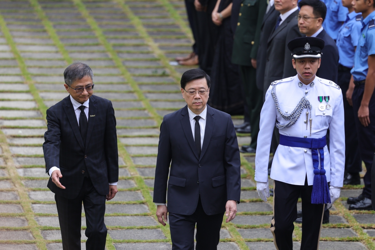 香港特區行政長官李家超(中)出席儀式並致獻花圈