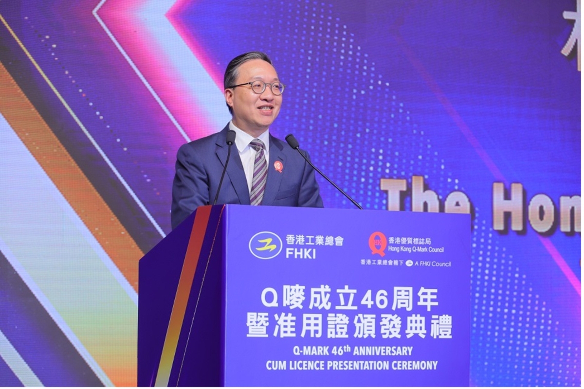 主禮嘉賓律政司司長林定國表示,Q嘜認證計劃伴隨著社會發展,先後為各行各業建立並提供專業、嚴謹、客觀的審核和認證服務,不僅提升了本地品牌的形象及消費者的信心,也推動企業不斷追求卓越表現,提升整體市場的質量標準。隨著Q嘜認證計劃涵蓋的商品和服務不斷擴展,它也成為了香港經濟發展和提升消費者信心的重要推動力。