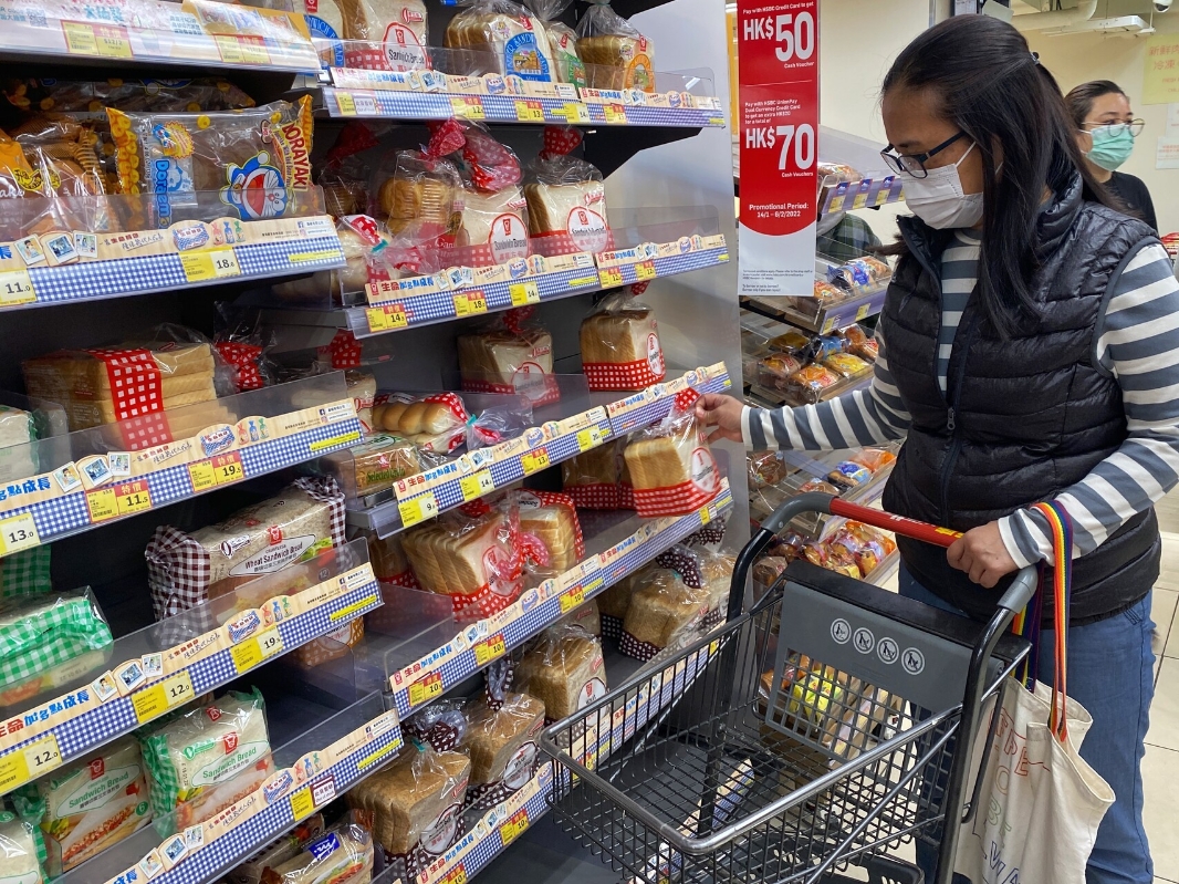 圖為香港市民在超市選購麵包蛋糕。香港中通社資料圖片 在各類綜合消費物價指數組成項目中,煙酒按年錄得最高升幅,上升21.4%;電力、燃氣及水上升6.5%;住屋上升3.3%;雜項服務上升2%;外出用膳及外賣上升1.8%;雜項物品上升1.2%;交通上升1%。錄得按年跌幅的類別為下跌1.6%的衣履;基本食品、耐用物品都分別下跌0.4%。 今年首9個月合併計算,綜合消費物價指數較一年前同期上升1.9% 。政府發言人表示,9月基本消費物價通脹仍然處於輕微水平。食品價格的按年升幅放緩,而能源相關項目價格的跌幅收窄。其他主要組成項目承受的價格壓力仍然大致受控。 發言人表示,展望將來,整體而言通脹在短期內應會維持輕微。香港經濟續增長或會為本地成本帶來一些溫和上升壓力。儘管外圍環境仍有不確定性,外圍價格壓力應會進一步緩和。政府會繼續留意情況。(完) 【編輯:林曉惠】