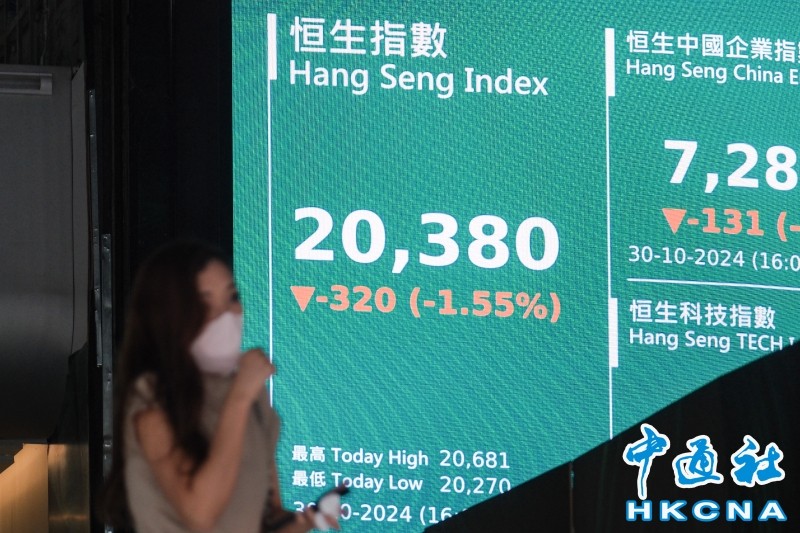 香港中通社圖片 當天,恒指低開114點報20586點,跌幅曾收窄至19點高見20681點。但A股下挫拖累,港股跌幅擴大,午後跌穿上午低位,最多跌431點低見20270點,之後跌幅收窄。 國企指數收報7286點,跌1.8%;科技指數挫2.4%,報4513點。 藍籌友邦挫2.1%、阿里巴巴跌1.7%、美團降2.4%、京東挫4.1%。翰森製藥急跌10.5%,為跌幅最大藍籌;萬洲首三季盈利增九成,全日升1.6%,最好表現藍籌。滙控再升0.3%,連升第四日。 第一上海首席策略分析師葉尚志對中通社記者分析,港股總體上仍處於整固整理行情階段,恒指現時主要波幅範圍在19700至21133點之間,後市要走出這範圍後才有新方向展現的機會。 他指出,未來一周將是港股關鍵窗口期,市場焦點除了放在國家人大常委會會議,11月5日的美國總統選舉以及11月7日的美聯儲議息結果公佈,都是市場的關注點。在等待有關消息公佈前,市場氣氛轉為觀望並且逐步趨濃,是可以預見的情況發展。(完) 【編輯:林曉惠】