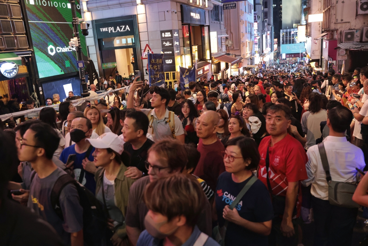 大批市民及旅客在蘭桂坊狂歡慶祝萬聖節